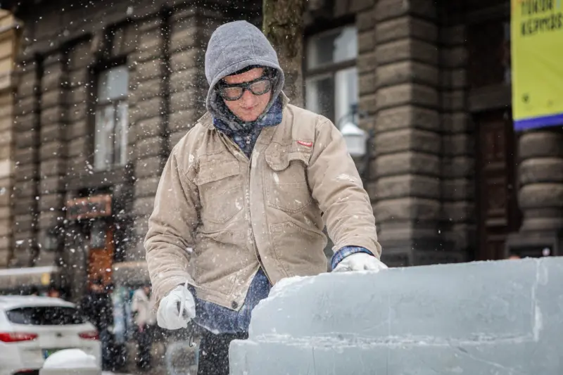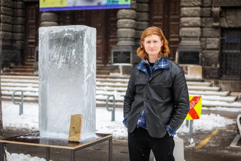 Négy óra munka megfeszített munka után jégperzseléssel és fafaragó eszközök használatával készült el Wessel Martin szobrász hallgató alkotása, egy minimalista fej. Aki látni szeretné, annak sietnie kell, mert a nagy hidegnek vége: a szobor hamarosan elolvadhat.