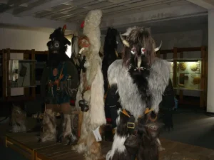 Eközben hangos kolompolással, kereplőzéssel űzik el gonosz szellemeket. A tavasz, a tél vagy az újév eljövetelét jelző népünnepeken viselt jelmezek és maszkok élénkek, sőt ijesztőek és évszázadokon keresztül megőrizték speciális külsejüket.