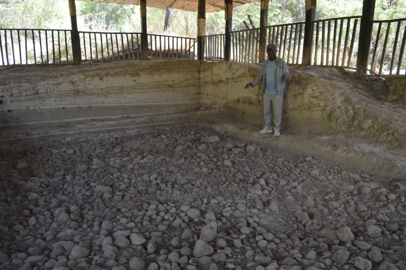 Jellegzetesen az a hely – és sok ilyen van – ahol a történet érdekes, de mondjuk úgy a látvány nem sokat ad hozzá. A Homo Heidelbergiensis (ezek nem mi vagyunk) és a Homo Sapiens (ezek viszont már igen) is lakott itt. Mondhatjuk, hogy itt találták a legrégebbi emberi település maradványait – ami egy tűzhelyből, és mellette eldobált eszközökből, csontokból látszik. Azt el kell ismerni, hogy ez ugyan egy tényleg fontos története az emberiségnek – minden ott kezdődött, amikor egyszer csak távoli őseink leültek a tűz köré és elkezdtek beszélgetni a jövőről – de nehezen tehető turistabaráttá. Sok hasonló hely küzd ezzel Spanyolországtól (Atapuerca) az Emirátusokon át (Faya ) Kínáig (Zhoukoutian) . Csak ugye a gazdagabb – szerencsésebb országokban ilyenkor építenek mellé egy látogatóközpontot, interpretatív múzeumot, sok sok interaktív cuccal, és mindjárt megvan a turistának az élmény – meg még beöltözött ősemberek, ősasszonyok, esetleg 3d-s virtuális mamutok is vannak (Franciaországban vannak) – akkor minden csodás. Etiópiában viszont minderre nincs pénz.