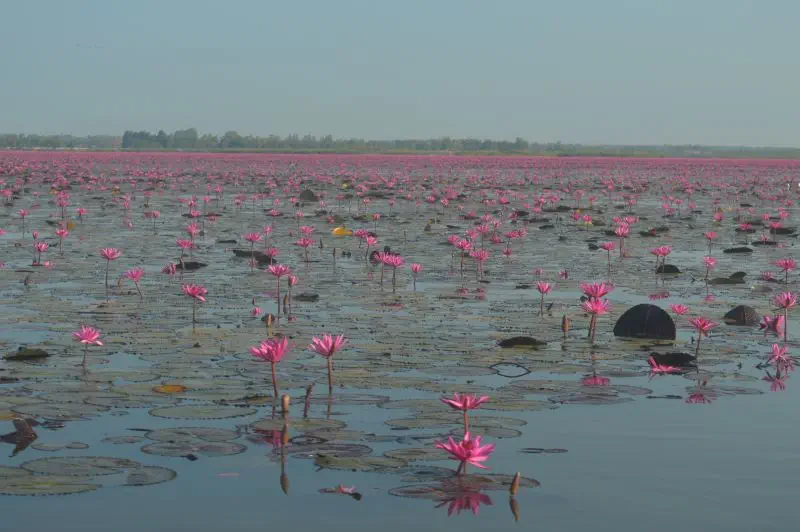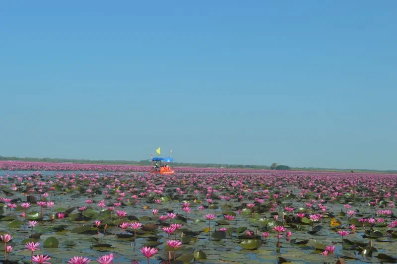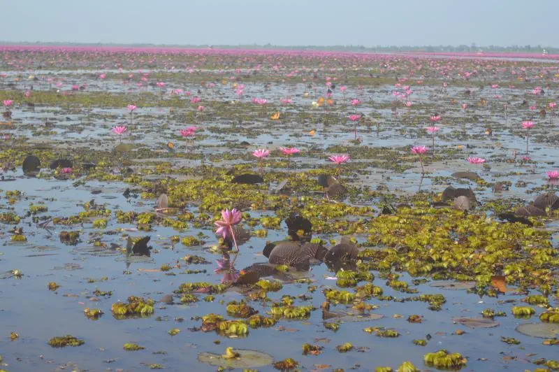 Talay Bua Daeng – a Vörös Lótuszok Tengere. Nem csak Thaiföld, de talán a világ legszebb tava – egészen földöntúli élmény. Mégis alig járnak ott külföldiek.