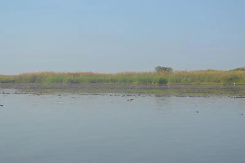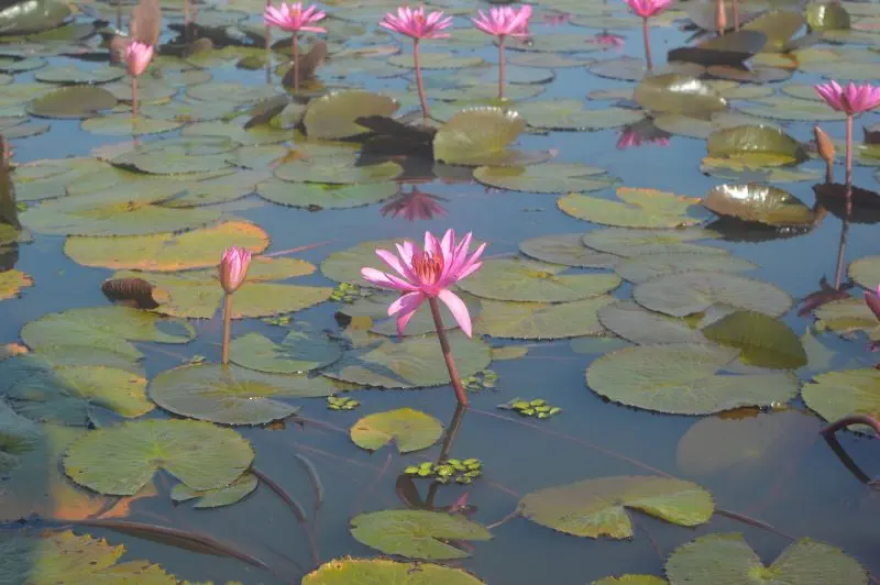 Aztán varázsütésre valami földöntúli szépségű helyre jutunk. Rózsaszín – néhány fehér – virágok tengerében halad a hajó, . Ameddig a szem ellát mindenütt virágok borítják a vízfelszínt.
