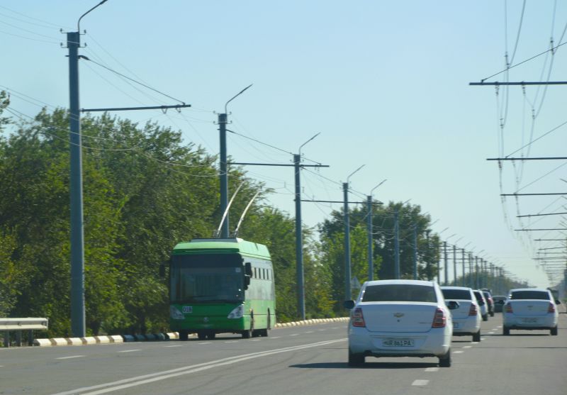 Az állomás is vadonat új – a kiemelt turistaövezetnek, maikor először arra jártam még vasúti összeköttetése sem volt, a szomszédos Urgenchbe jártak a vonatok, innen pedig a világ második leghosszabb, jó 32 kilométeres trolivonalával kellett kiutazni. A régi szovjet torikon romantikus volt az út – és lélekölően hosszú.