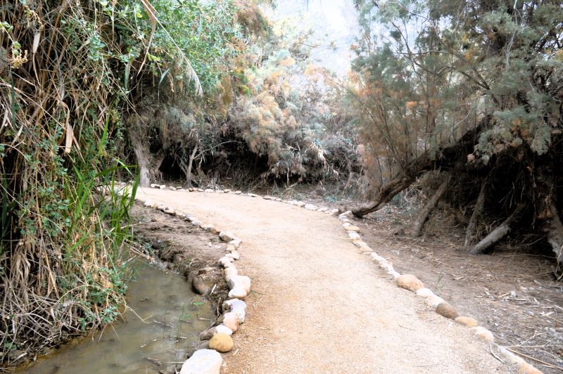 Innen a busz tovább visz egy nagy parkolóhoz. Lefelé egy kellemes, a térséghez képest elképesztően buja növényzettel övezett sétaúton jutunk el. Közben útba ejtjük keresztelő Szent János forrását is.