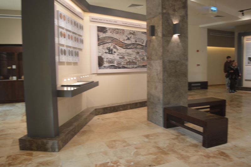 Az antik mozaikpadló mellett modern mozaikok is láthatók – amelyek közül a legfurcsább a pápalátogatást örökíti meg, XVI Benedek pápával és Rania királynéval a pápamobilban.